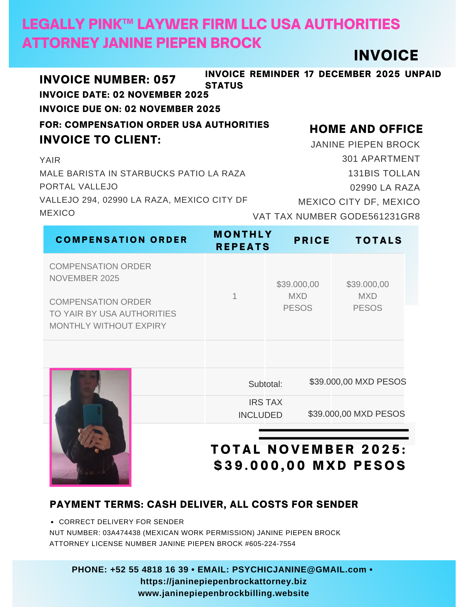 057 INVOICE YAIR REMINDER 17 DECEMBER 2025