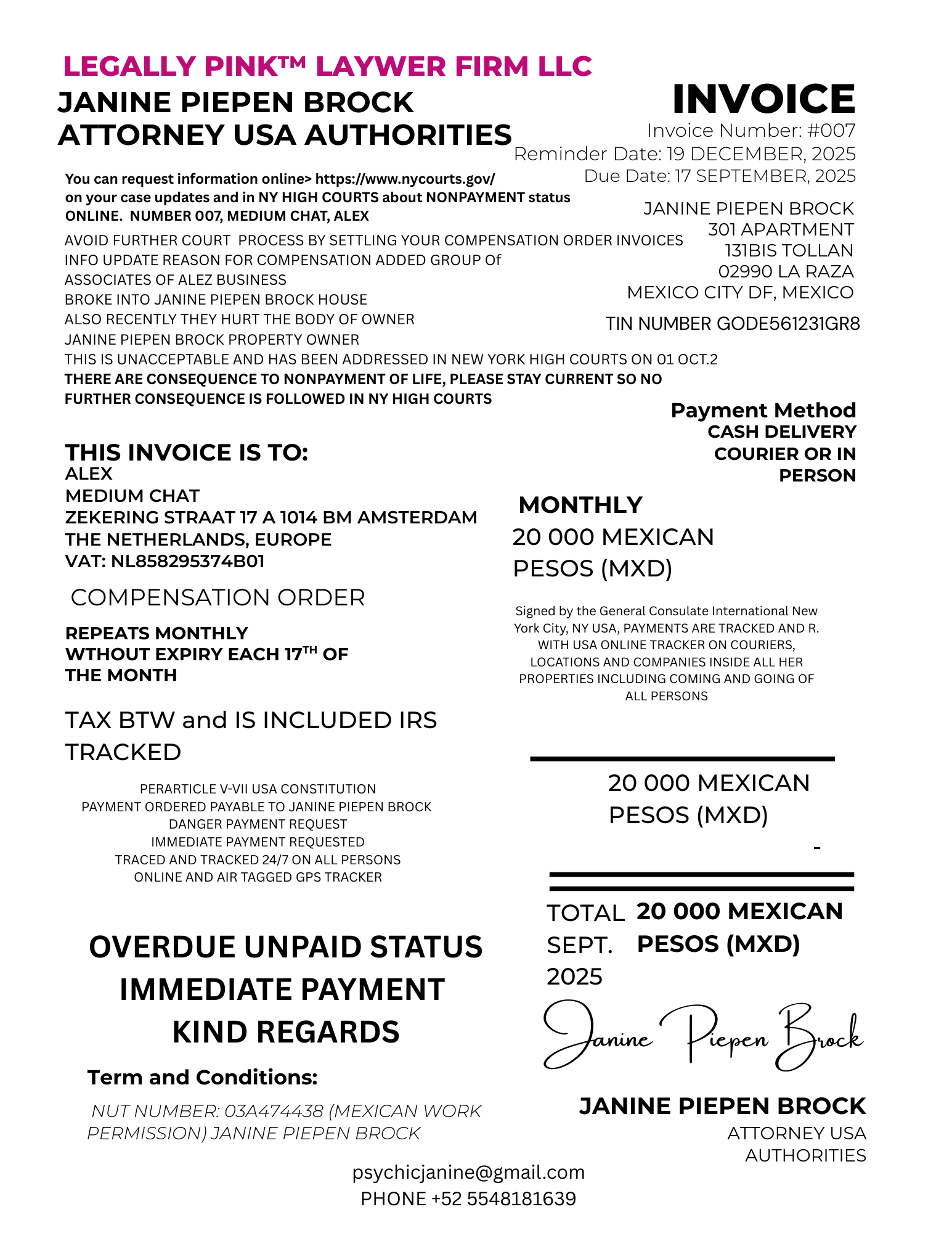007 INVOICE ALEX REMINDER 24 DECEMBER 2025