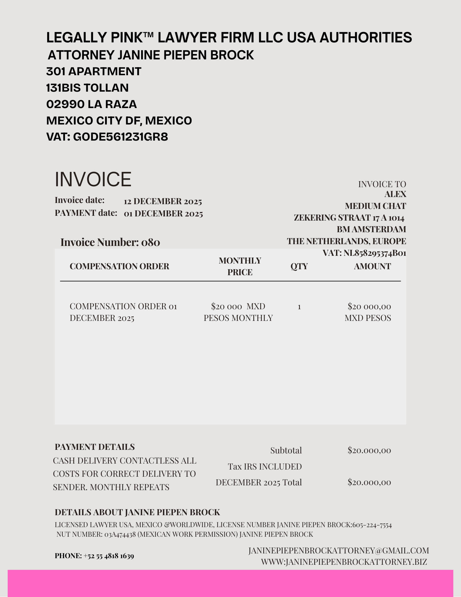 080 INVOICE ALEX, MEDIUM CHAT DECEMBER 2025