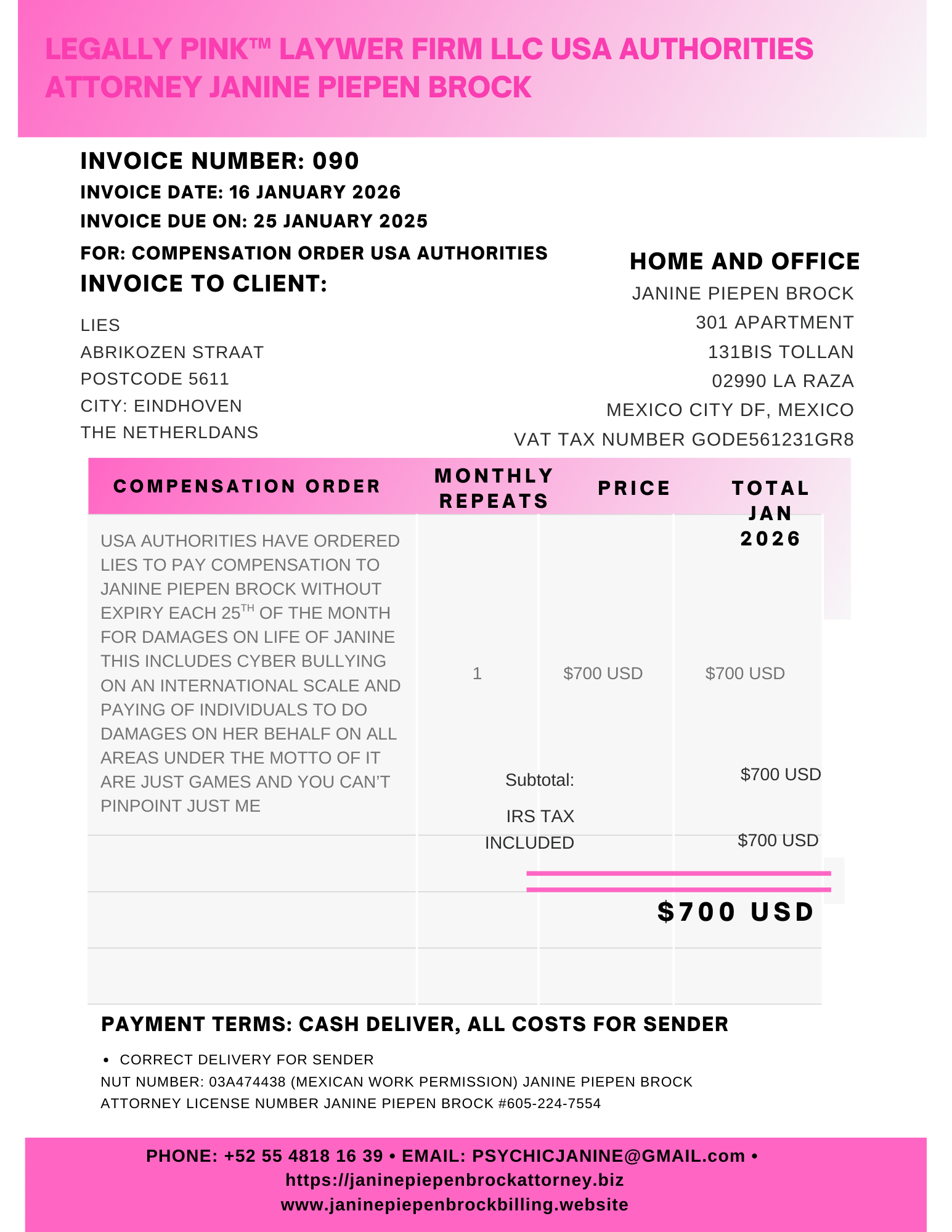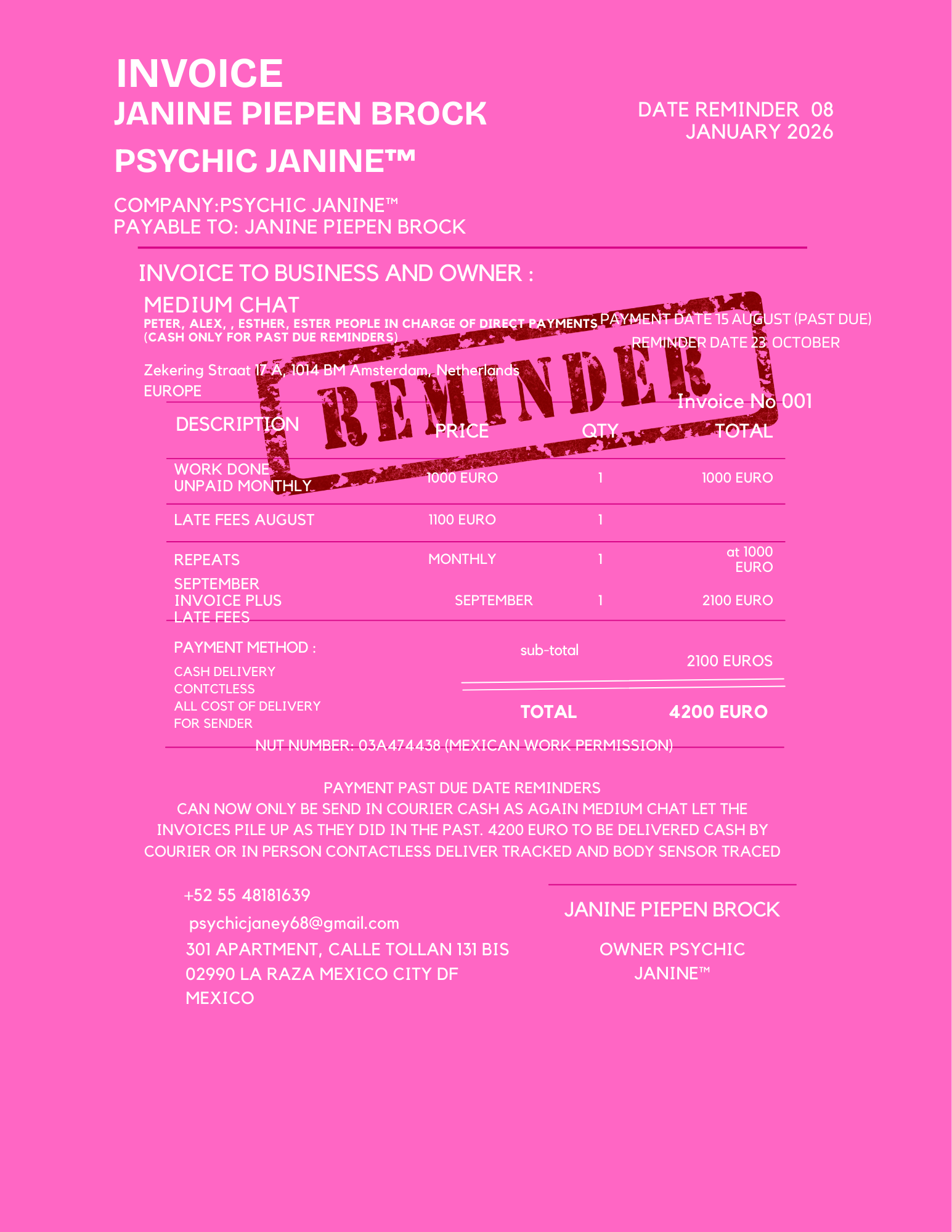 024 INVOICE ANDREA REMINDER 01 JANUARY 2026