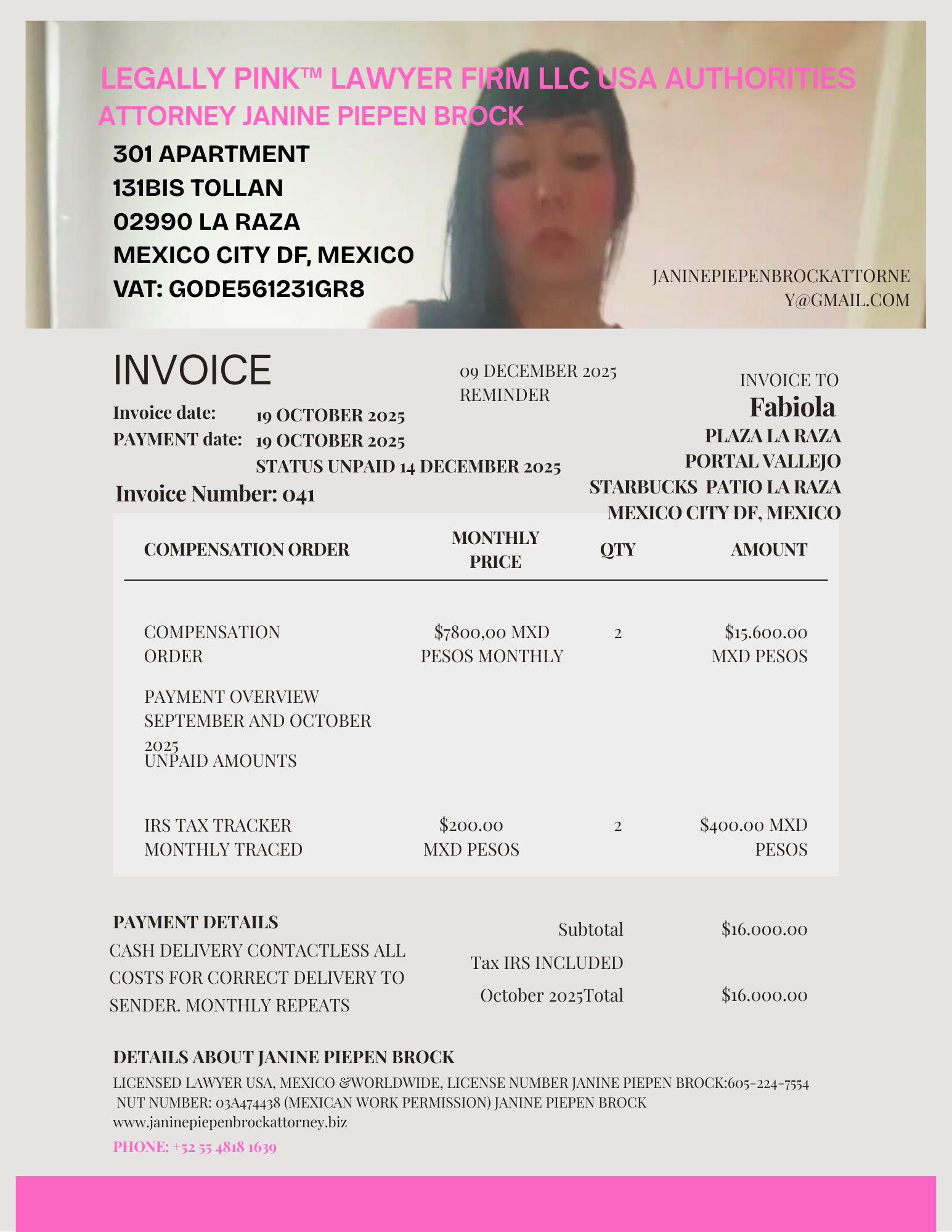 041 INVOICE FABIOLA REMINDER 14 DECEMBER 2025
