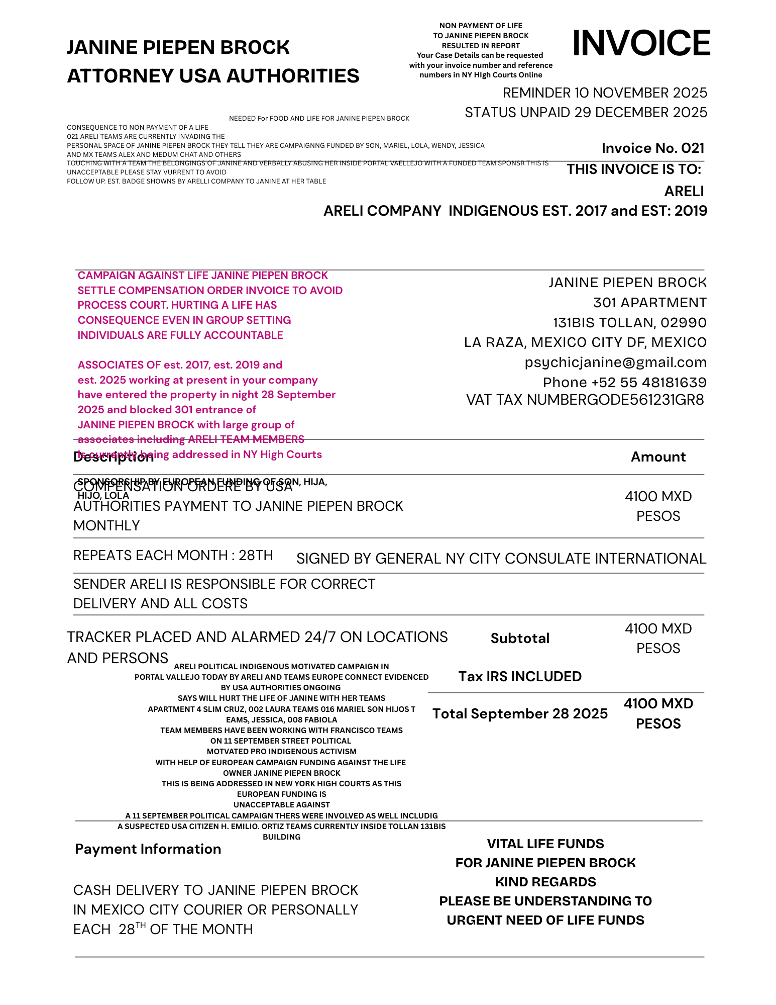 021 INVOICE ARELI REMINDER 23 DECEMBER 2025