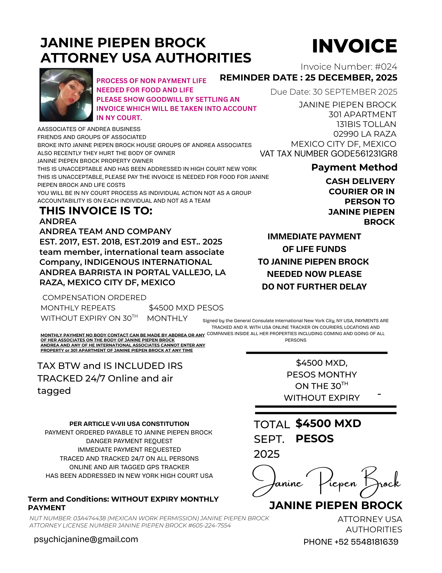 024 INVOICE ANDREA REMINDER 23 DECEMBER 2025