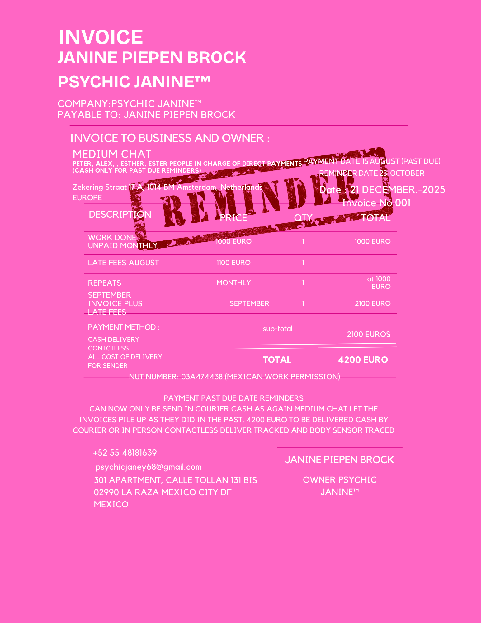 024 INVOICE ANDREA REMINDER 21 DECEMBER 2025